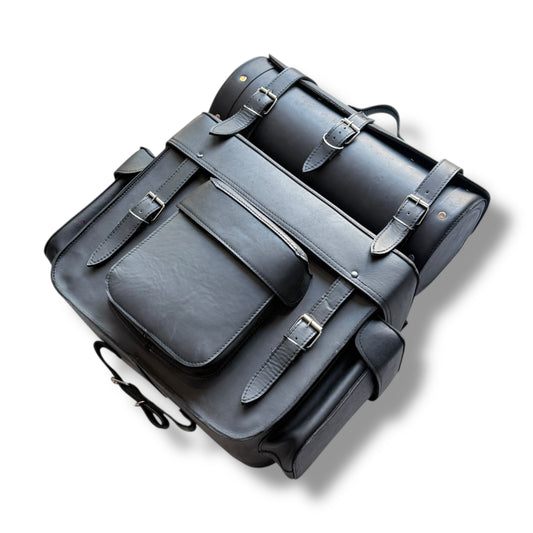 Alforja trasera para parrilla y respaldo de motocicleta (Piel)