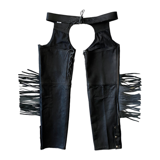 Chaparreras de piel con barbas para motococlista